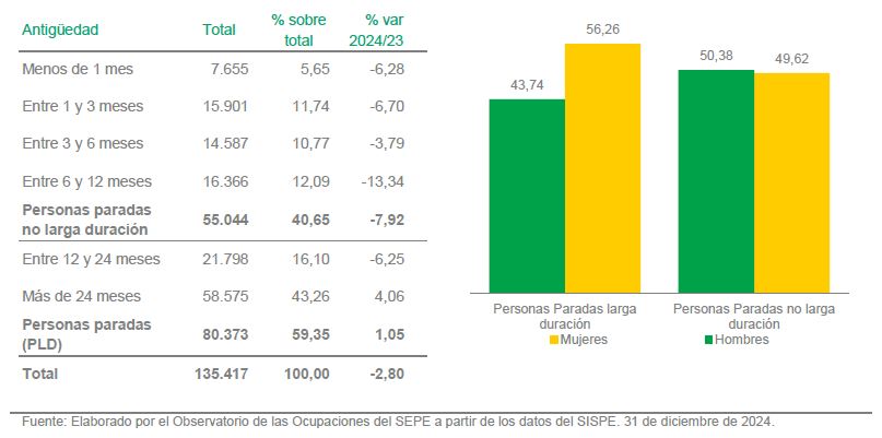 A 31 de diciembre de 2024 el número de demandantes de empleo parados con discapacidad registrado en las oficinas de los servicios públicos de empleo logró la cifra más baja de la última década. El perfil mayoritario de las personas del colectivo es el de una mujer mayor de 45 años con bajo nivel de formación.