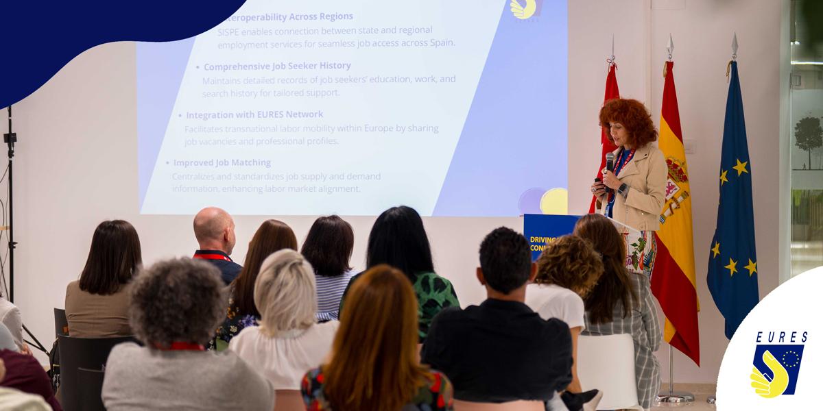 La tercera jornada abordó las perspectivas de futuro de la red EURES. Elena Fernández Galán, Coordinadora Nacional de EURES España, presentó el funcionamiento de la red en España, integrada en un modelo nacional descentralizado, destacando su papel en la promoción de la movilidad laboral en Europa. Su intervención, junto a la de representantes de la Comisión Europea (DG EMPL), ELA y varios responsables de miembros y socios EURES, generó gran interés y contribuyó a impulsar el diálogo estratégico sobre el futuro de la red.