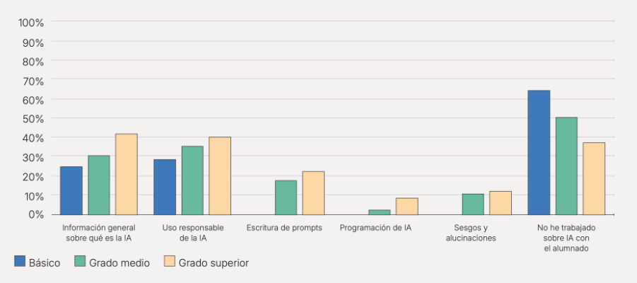 1En el informe final del estudio se pueden consultar los resultados detallados de cada una de las técnicas de recogida de información utilizadas. Informe disponible en: https://ayudaenaccion.org/uploads/2025/07/AeA_Informe-Inteligencia-Artificial-FP_ESP_Final_compressed.pdf