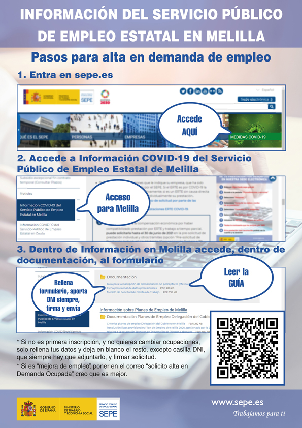 Con el fin de facilitar las gestiones relacionadas con los trámites de la demanda de empleo en la Ciudad Autónoma de Melilla, se ha elaborado esta infografía donde se detallan todos los pasos que se deben seguir.