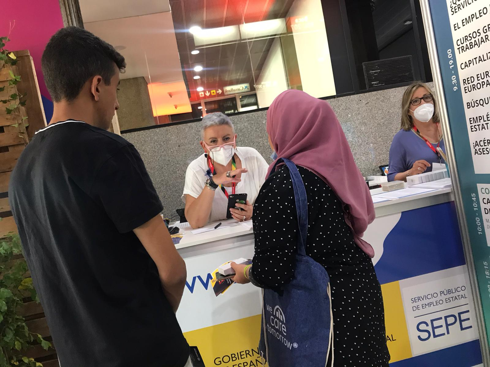 El SEPE, a través de su participación en la feria JOBarcelona'22, se acerca a los más jóvenes y les presenta las diferentes opciones que el organismo les ofrece para afrontar su futuro, como por ejemplo: